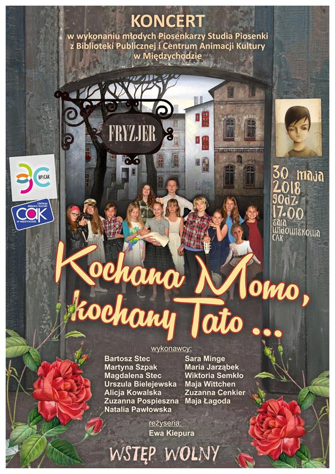 30 maja o godzinie 17:00 odbędzie się koncert w wykonaniu młodych Piosenkarzy Studia Piosenki z BPiCAK pt. "Kochana Mamo, kochany Tato..." w sali widowiskowej CAK.
