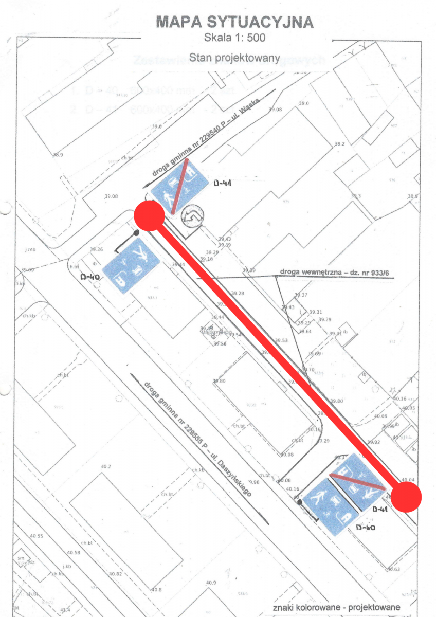 - ulica równoległa do ul. Daszyńskiego, wewnątrz osiedla oraz łączniki do ul. Daszyńskiego – wprowadzenie strefy zamieszkania