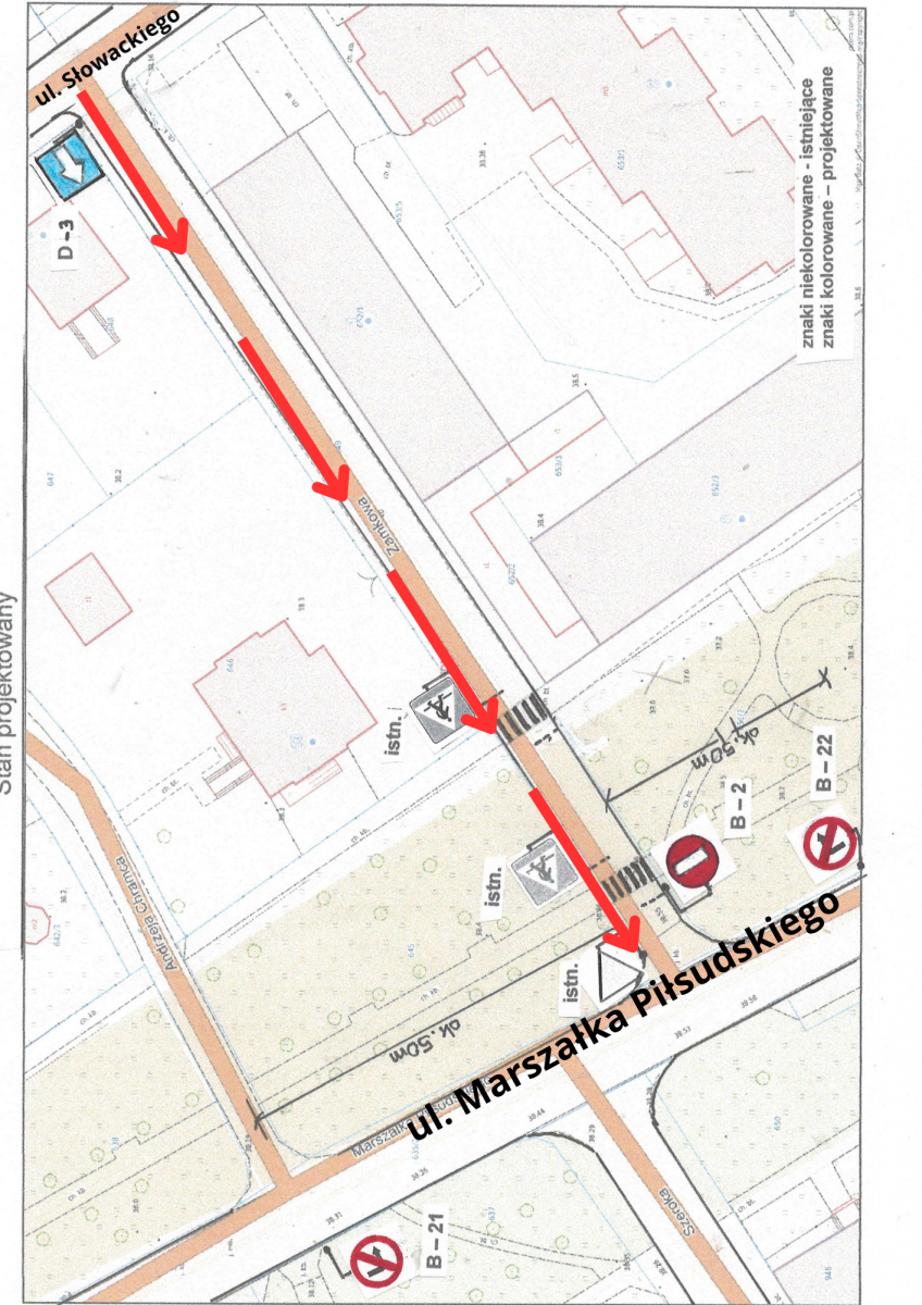 - ul. Zamkowa będzie drogą jednokierunkową – wjazd będzie możliwy wyłącznie od strony ul. Słowackiego