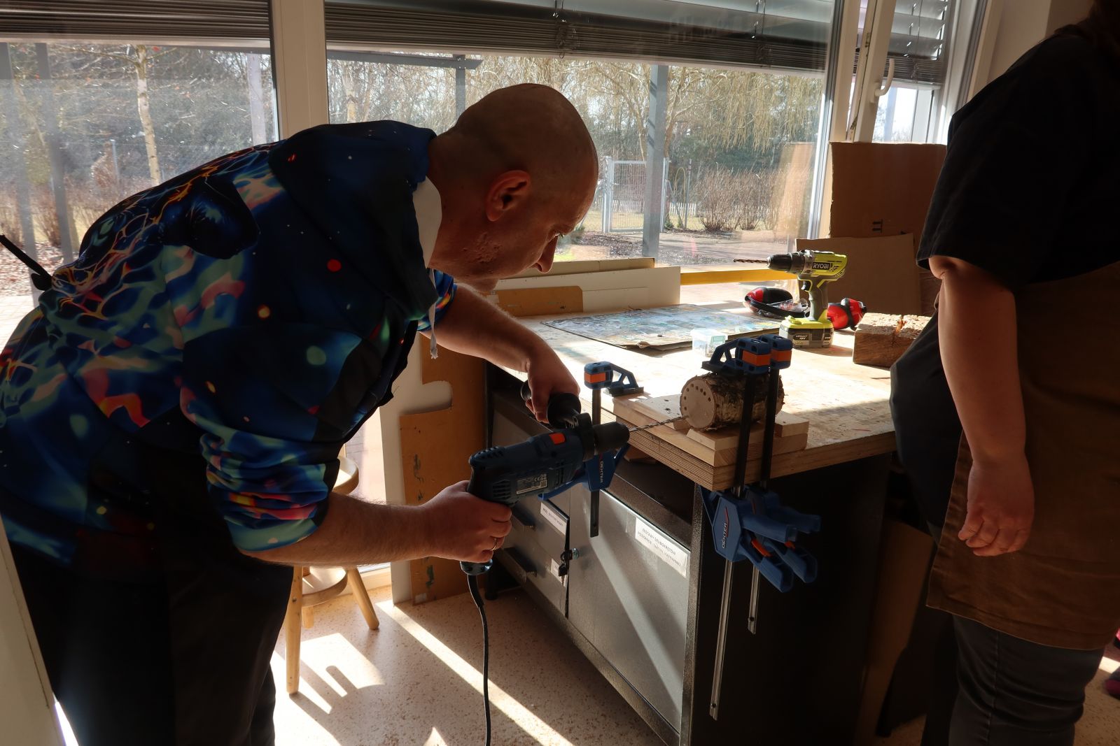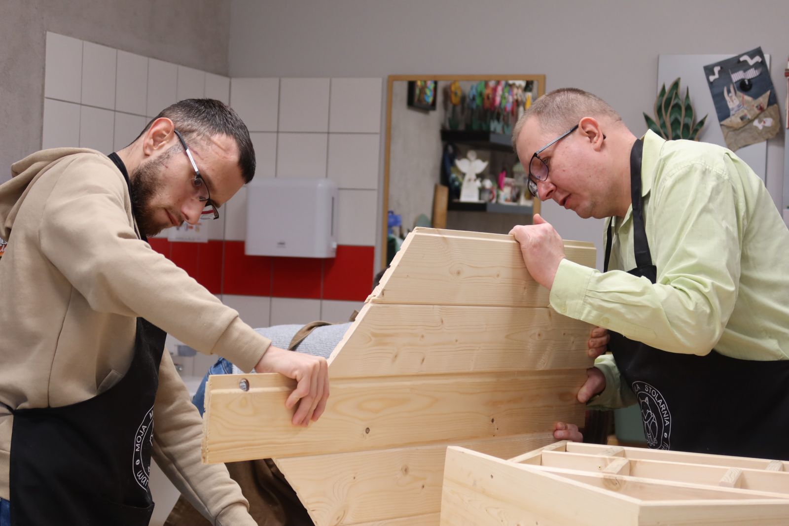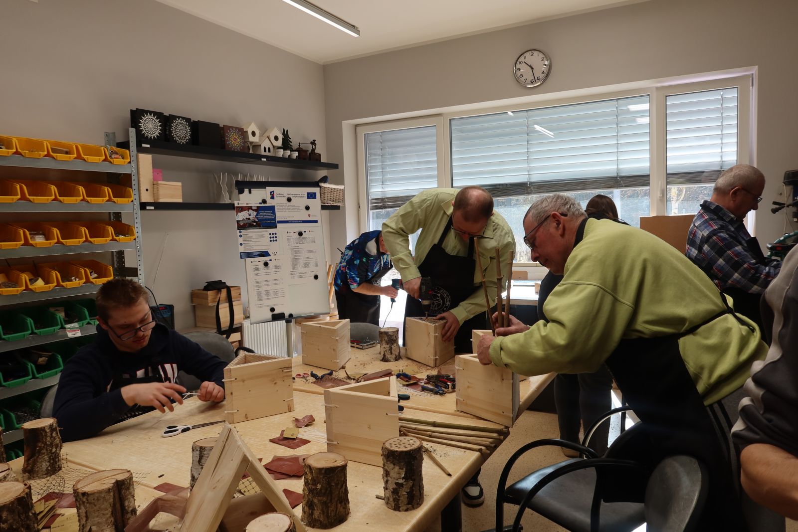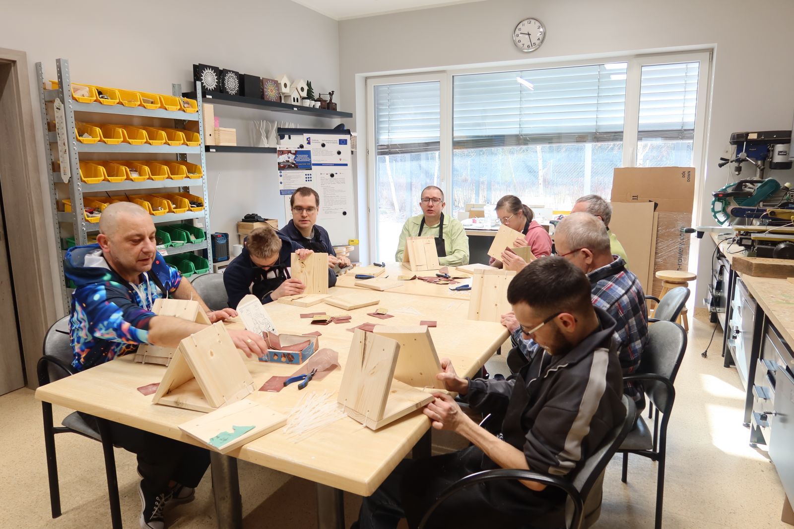 Równie ważnym elementem były warsztaty stolarskie, wprowadzające w podstawy pracy technicznej. Nauka obsługi narzędzi, obróbki drewna oraz wykonywania prostych prac stolarskich pozwoliła uczestnikom zdobyć konkretne kompetencje zawodowe. Zajęcia te uczyły także planowania pracy, przestrzegania zasad bezpieczeństwa oraz odpowiedzialności za powierzone zadania.